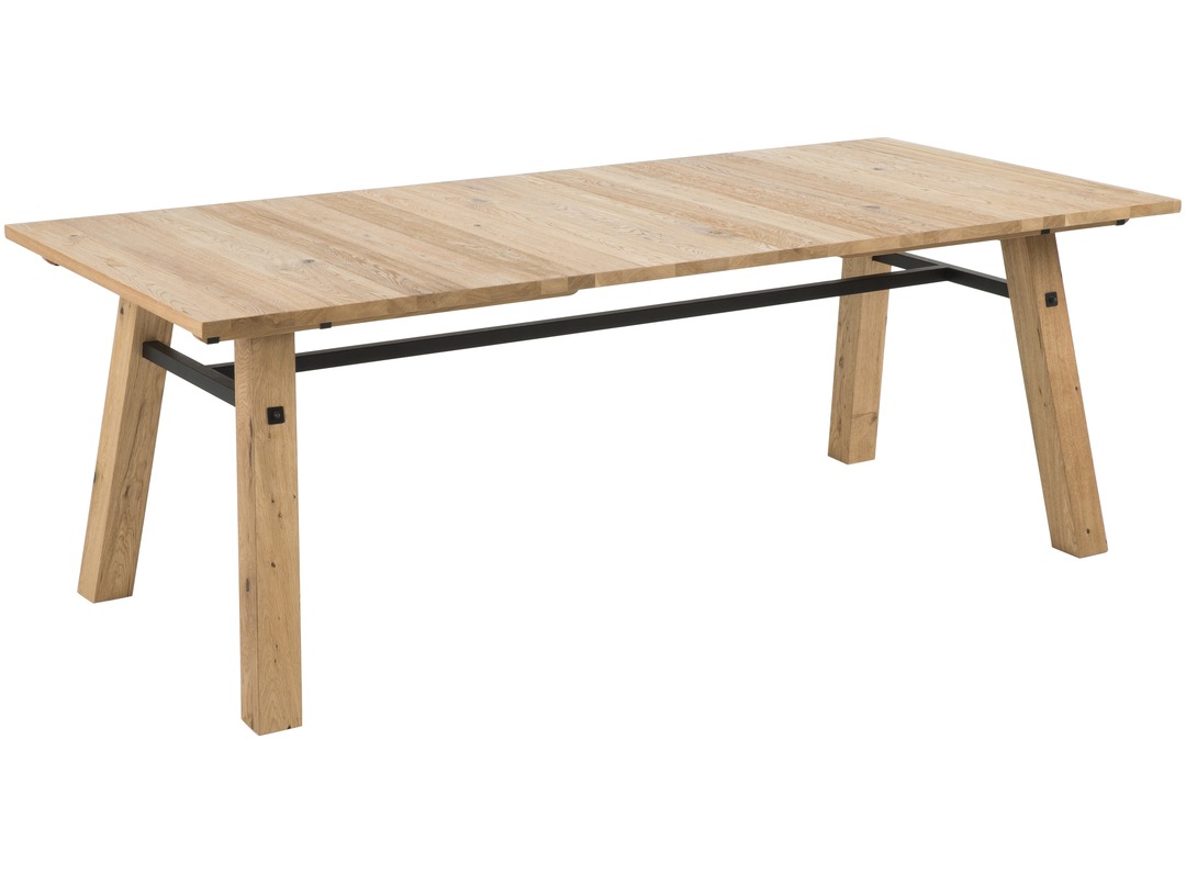 Simplicity and rustic style underpins the Stockholm extension dining table which is an entertainer’s dream. Made from a combination of solid and veneer oak with a clear lacquered finish and a black lacquered steel bar detail adds the finishing touch. The Stockholm dining table is suitable for all types of homes and interiors.