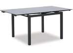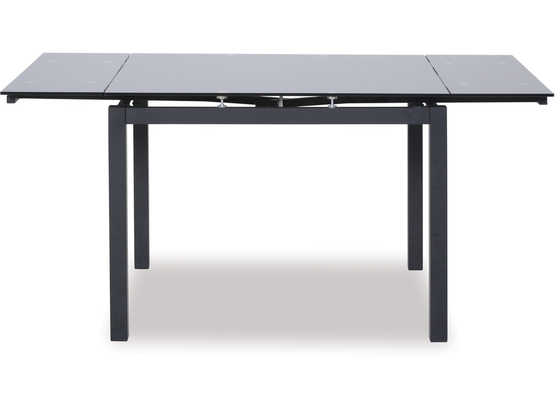 The Liffey extension dining table is a modern design perfect for a contemporary home. Featuring a black glass top, the black metal legs and underframe gives this table a stylish finish and will make an eye catching addition to your dining area.