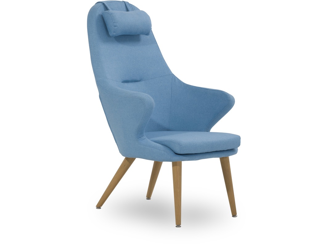 Bring modern style to your living space with the Jakob occasional chair. This contemporary chair full of comfort and style, features angled wooden legs and simple clean lines. Fully upholstered in Sky blue fabric, the Jakob chair is a great choice for any living area.
