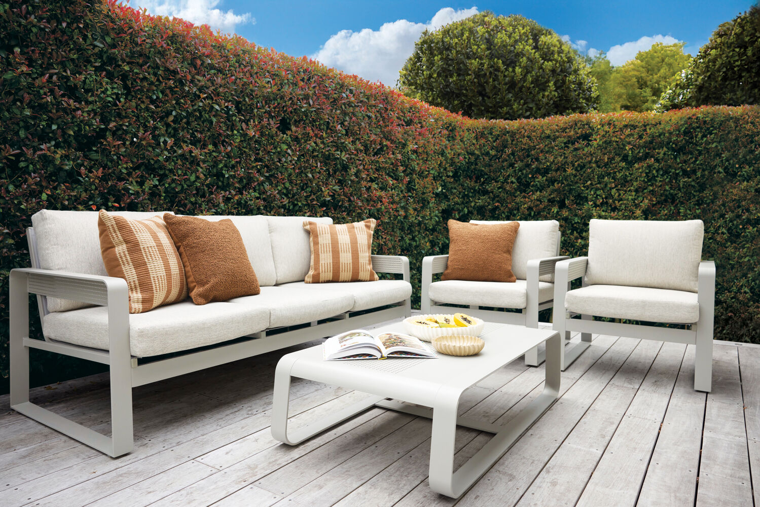 Transform your outdoor living area with the contemporary Ibiza 4-pce lounge suite. The black powder coated aluminium design is both stylish and durable and the seat and cushions are designed for comfort. The Ibiza 4-pce lounge suite is an inviting suite to relax with family and friends and will become the focal point of your outdoor living area.