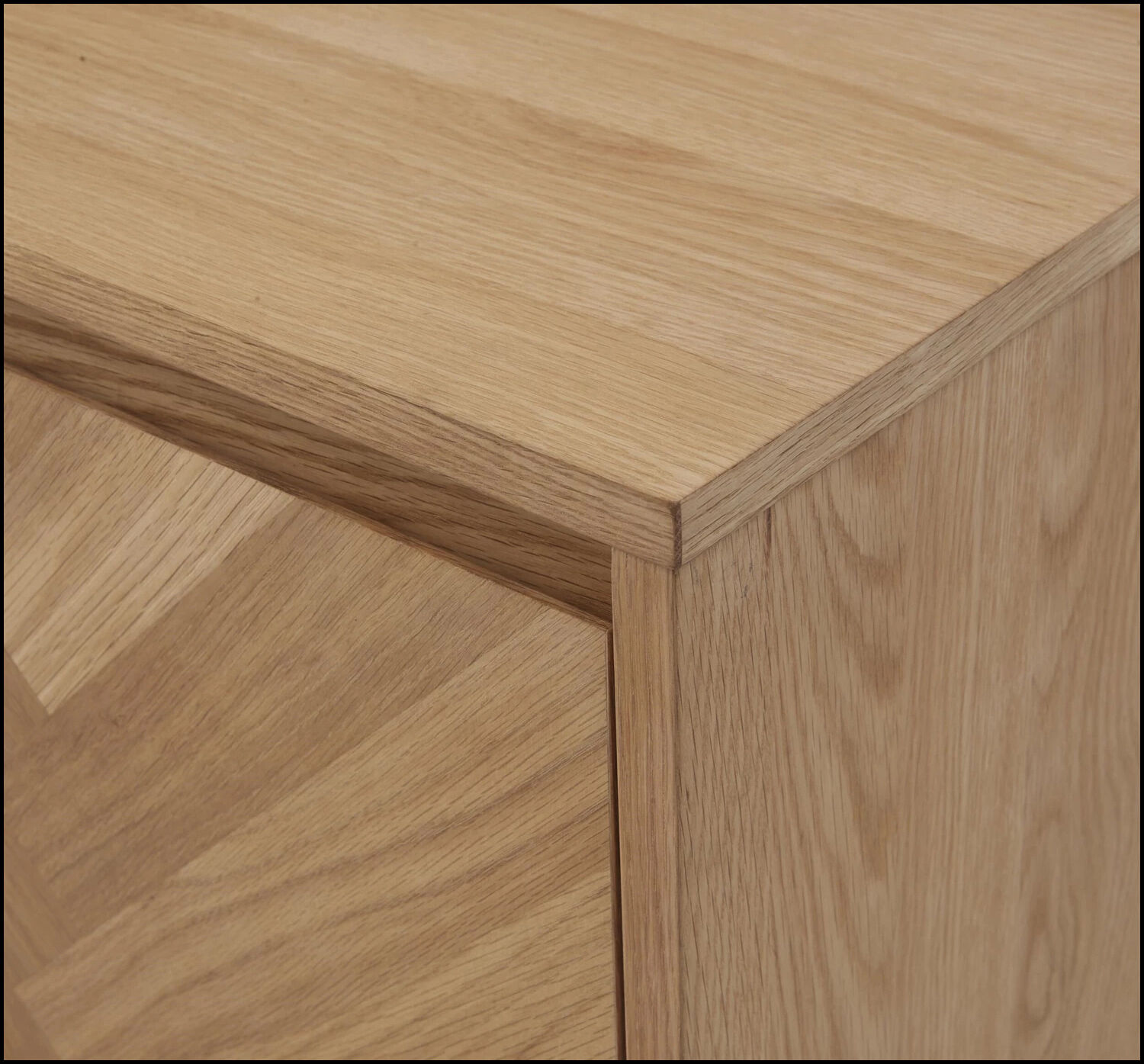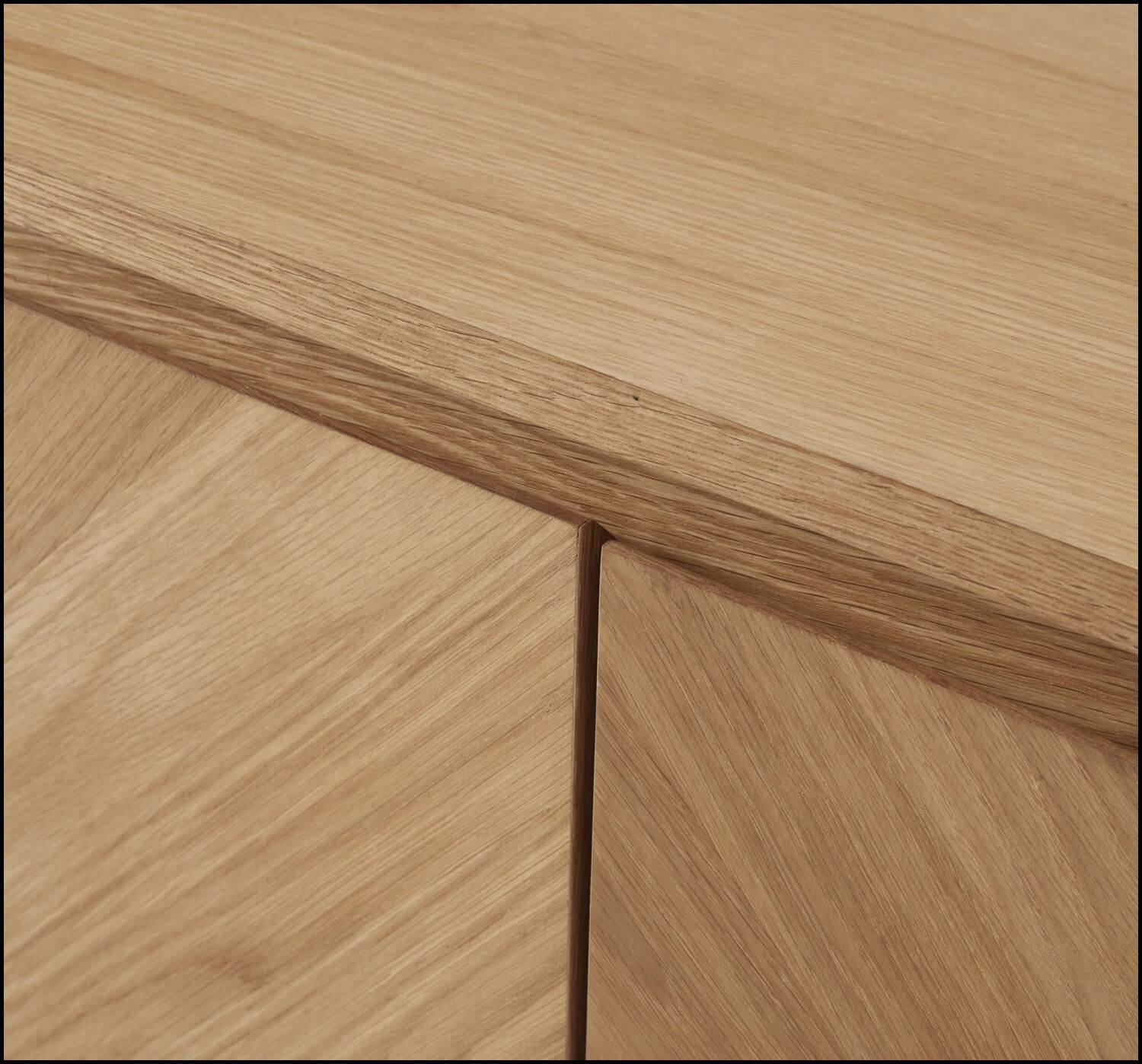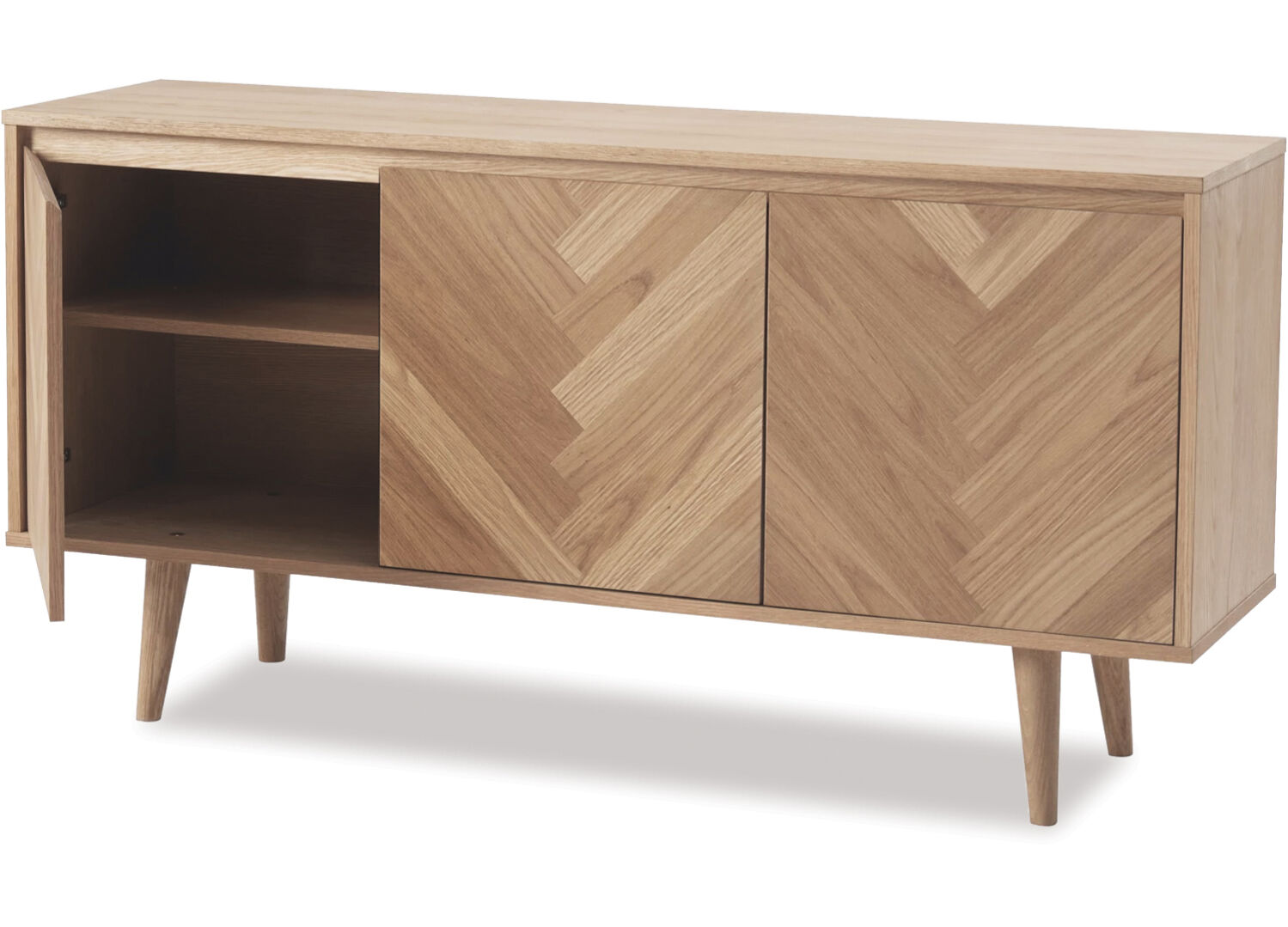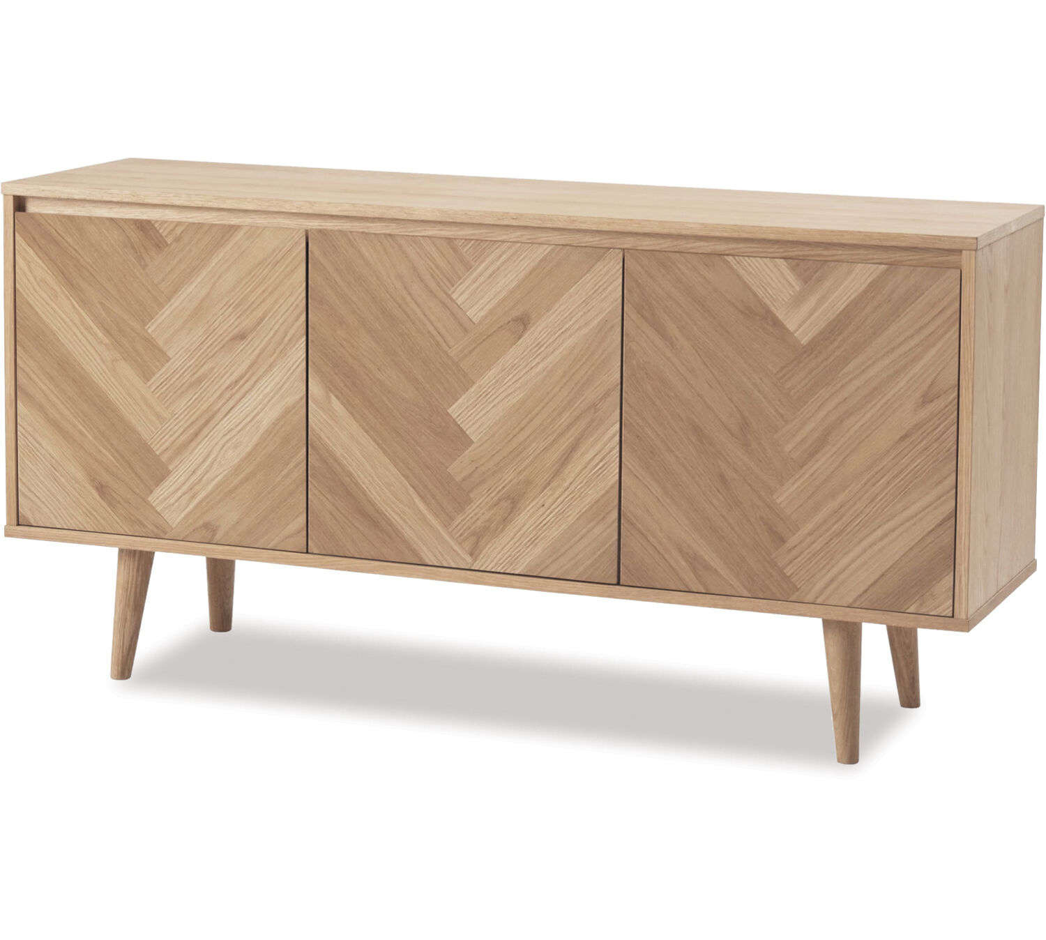 The Casola sideboard brings timeless craftsmanship and modern simplicity together. Featuring three parquet-patterned doors in warm, natural oiled oak tones, this piece is designed to stand out while offering practical storage for your home. The clean lines and tapered legs lend a contemporary edge, while the herringbone detail on the doors adds texture and sophistication.
