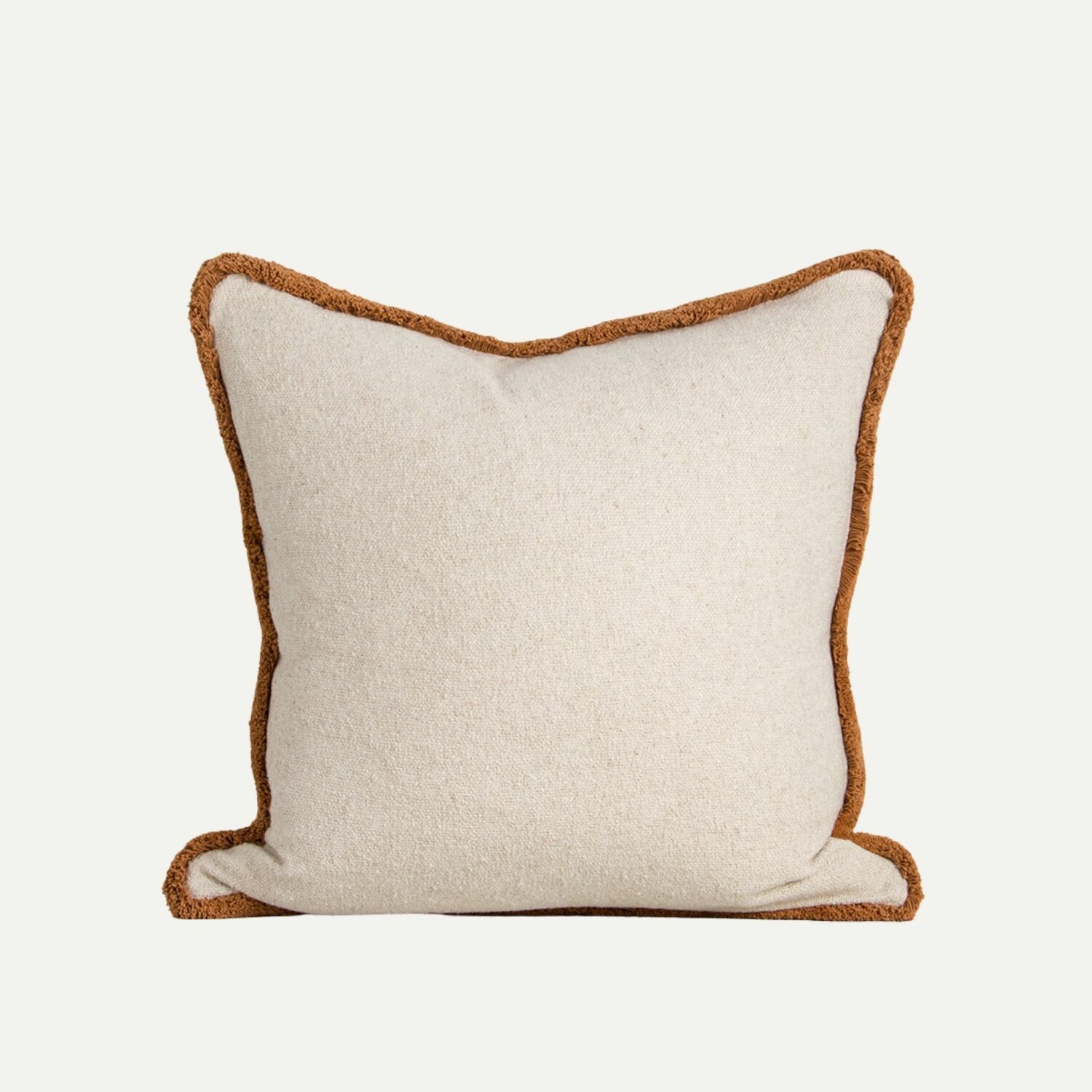 Featuring a soft, off-white bouclé base framed by a chunky cotton fringe, the Darcy cushion’s generous size and inviting texture is designed effortless layering. Made from a blend of cotton and recycled polyester, the sienna-toned fringe adds a subtle element of colour that adds depth and contrast to cushion pairings.