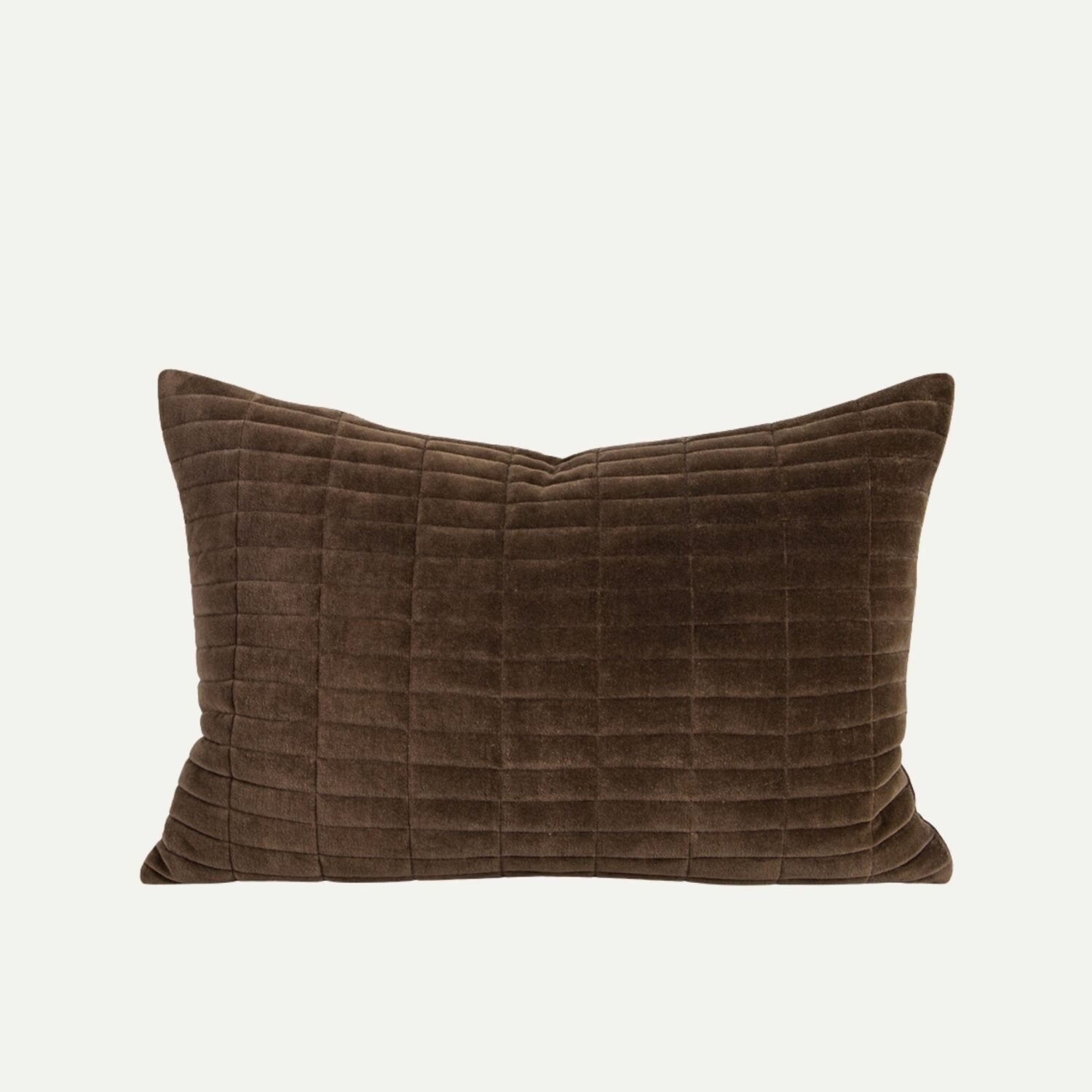 Add depth and dimension to your space with the Turner lumbar in rich chocolate velvet. Crafted from 100% cotton, the quilted brickwork surface catches the light to reveal subtle structure and an understated, tactile texture. Both striking and supportive, this cushion suits both contemporary and classic interiors.