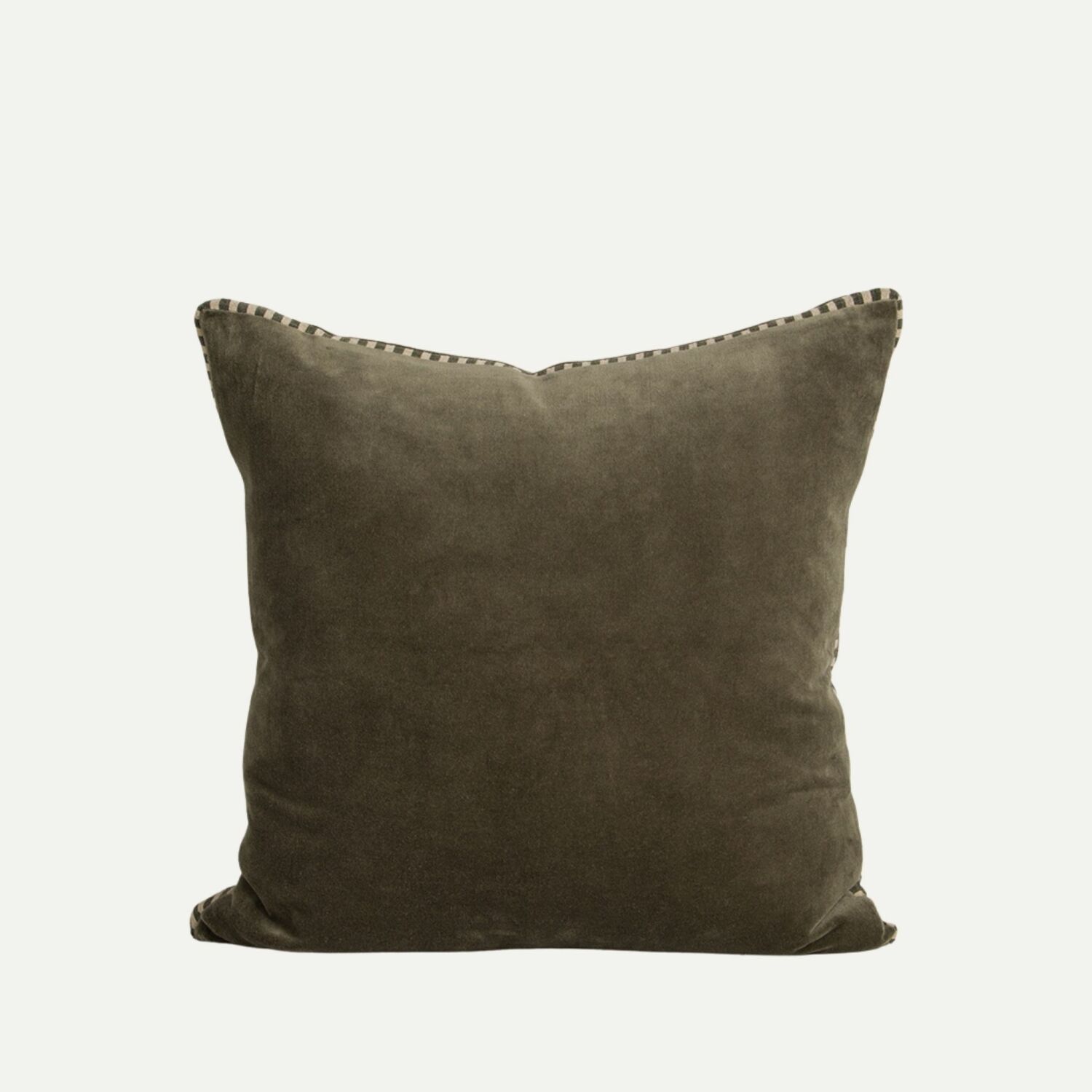 Create an alluring, sophisticated space with the sculpted, cylindrical form of the Elliot bolster. Balancing softness and structure, plush chocolate velvet is edged with striped linen piping, for a piece that is both visually striking and inviting to touch. Designed to bring dimension and luxury to everyday living, Elliot pairs beautifully with the boxy silhouette of the Edward cushion - creating a layered aesthetic that feels timeless and considered.