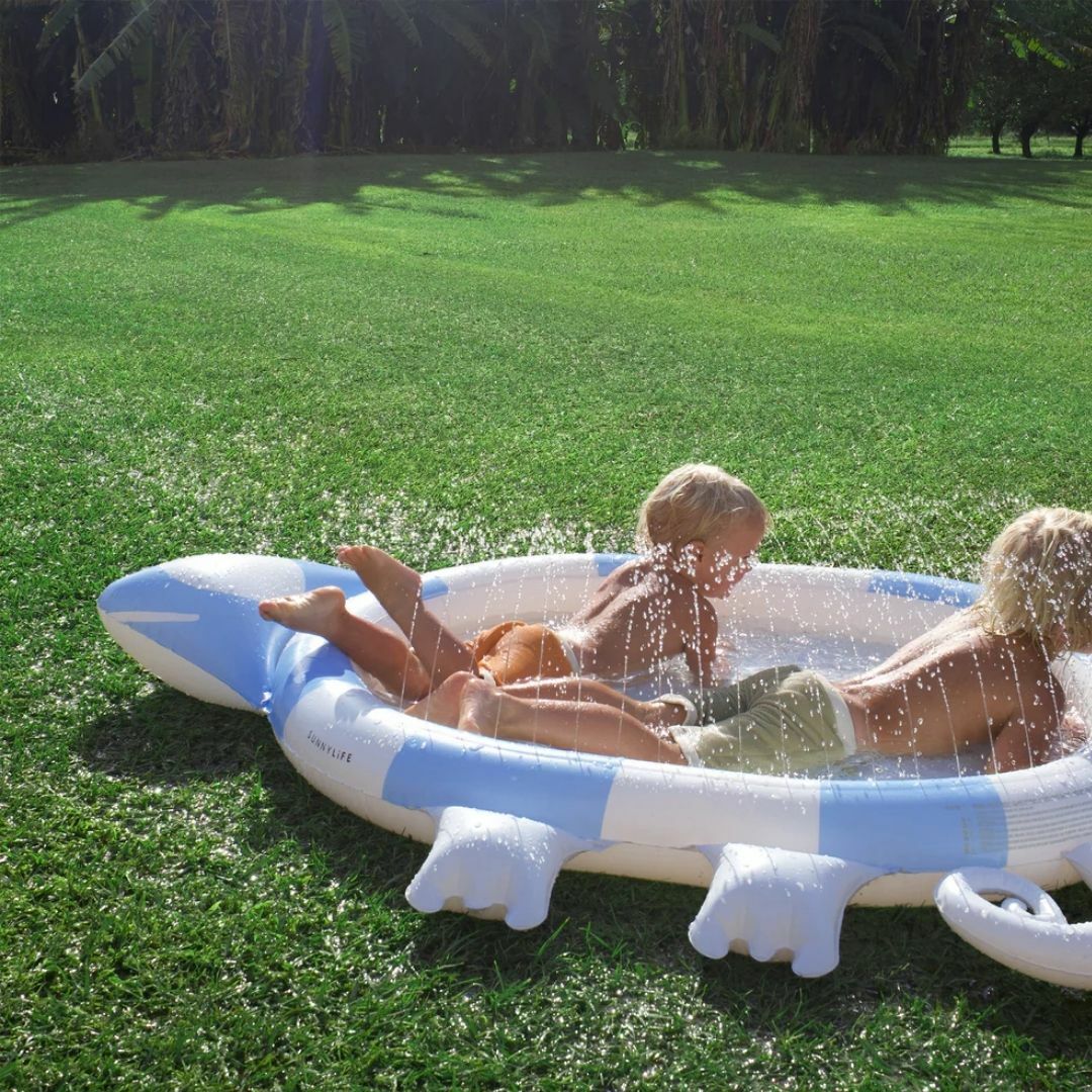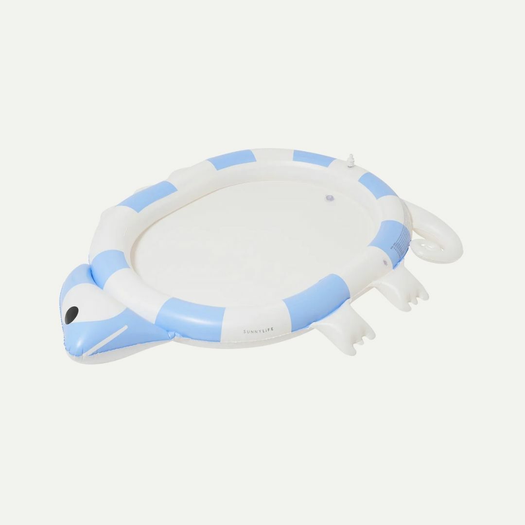 Sprinkle some fun for your little ones. The Into The Wild Kids Sprinkler Mat is designed to refresh hot summer days and provide hours of water filled playtime. Perfect for kids that are just starting to build water confidence and enjoy splish-splashing their hands and feet. Simply attach to your garden hose and play above the sun shower of water spraying from all sides. Every little one needs a summer companion and this one will definitely turn heads with its chameleon shape and sea blue and white colourway.