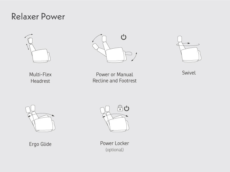 • Rocking function: Enjoy the ability to lock the gliding and rocking function with an optional mechanism fitted to your relaxer.