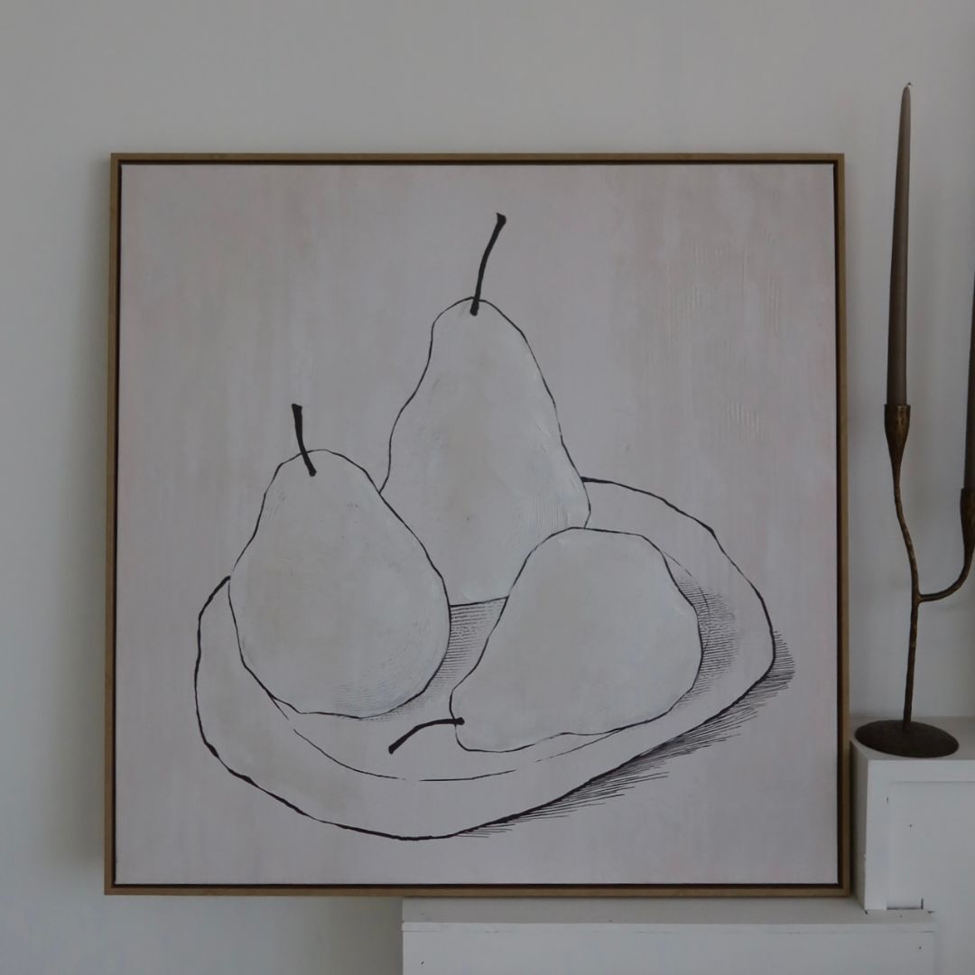 Perfect Pear is a minimalist still life artwork celebrating form, simplicity, and quiet elegance. Delicate linework outlines three pears resting on a plate, creating a refined, understated composition that feels calm and intentional. The neutral background and hand-drawn style give the piece a timeless, modern appeal.