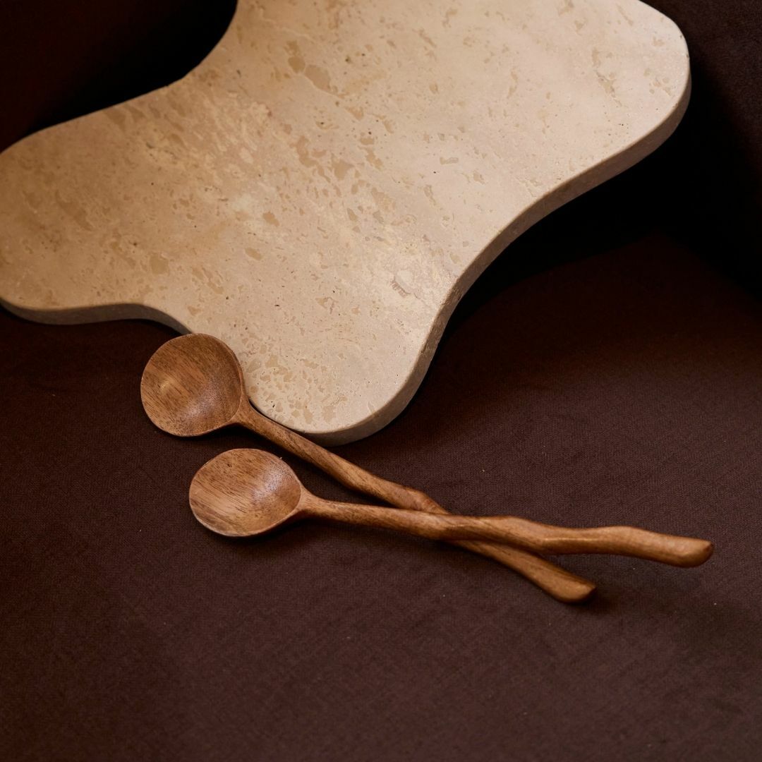 Hand-carved from natural wood, our Wavy Salad Servers bring an organic, sculptural touch to your table.